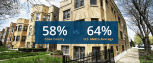 - 58% of Cook County households own their homes, compared to 64% of households on average across U.S. metro areas.